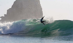 km del pueblo, destaca por sus olas altas y ordenadas, pero además sobresale